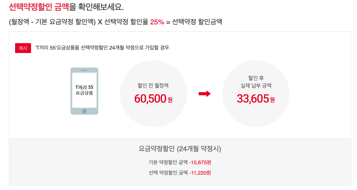 SKT에서는 요금약정할인과 선택약정할인을 제공하고 있으니, 꼭 한번 확인해보세요!