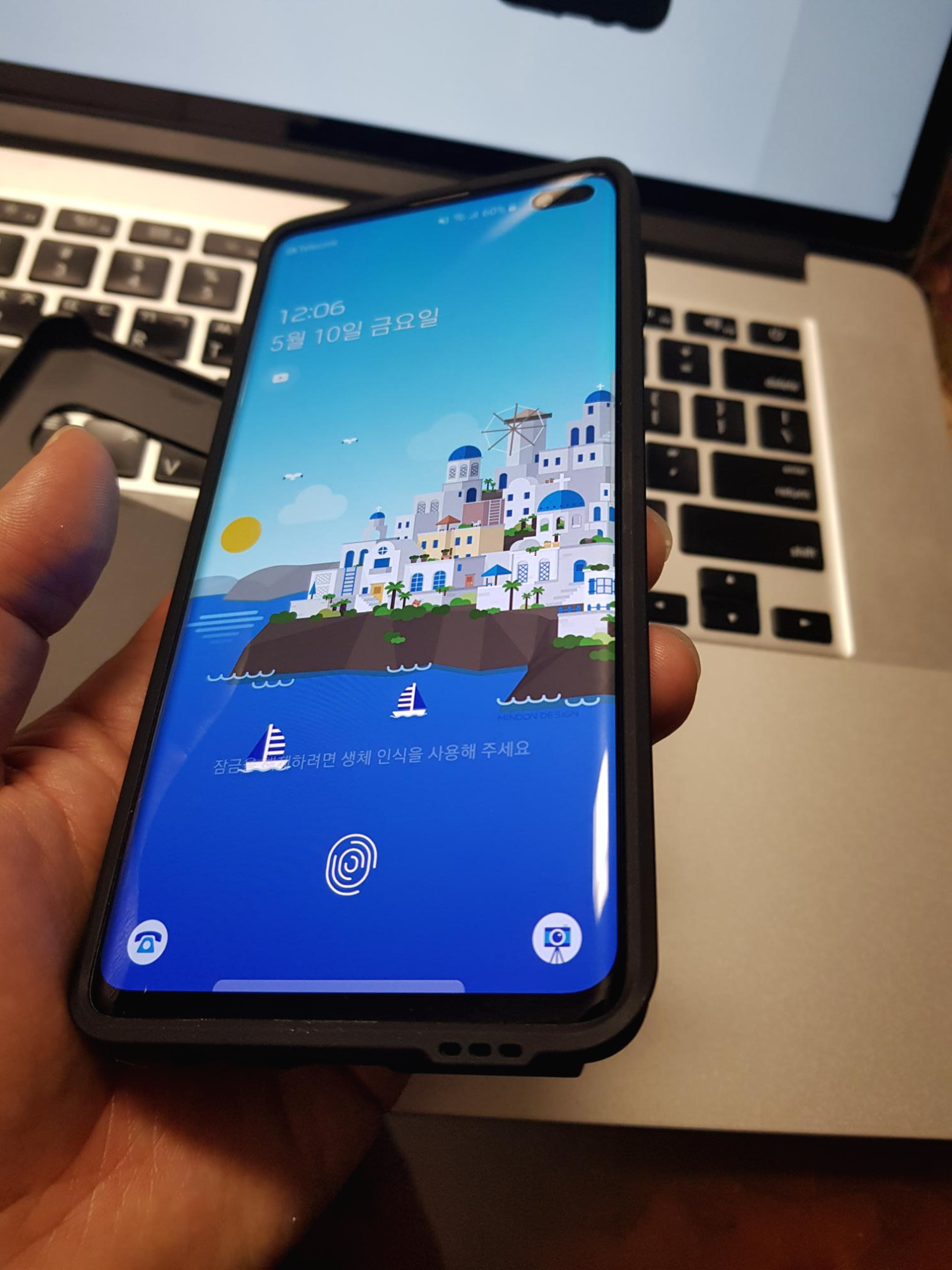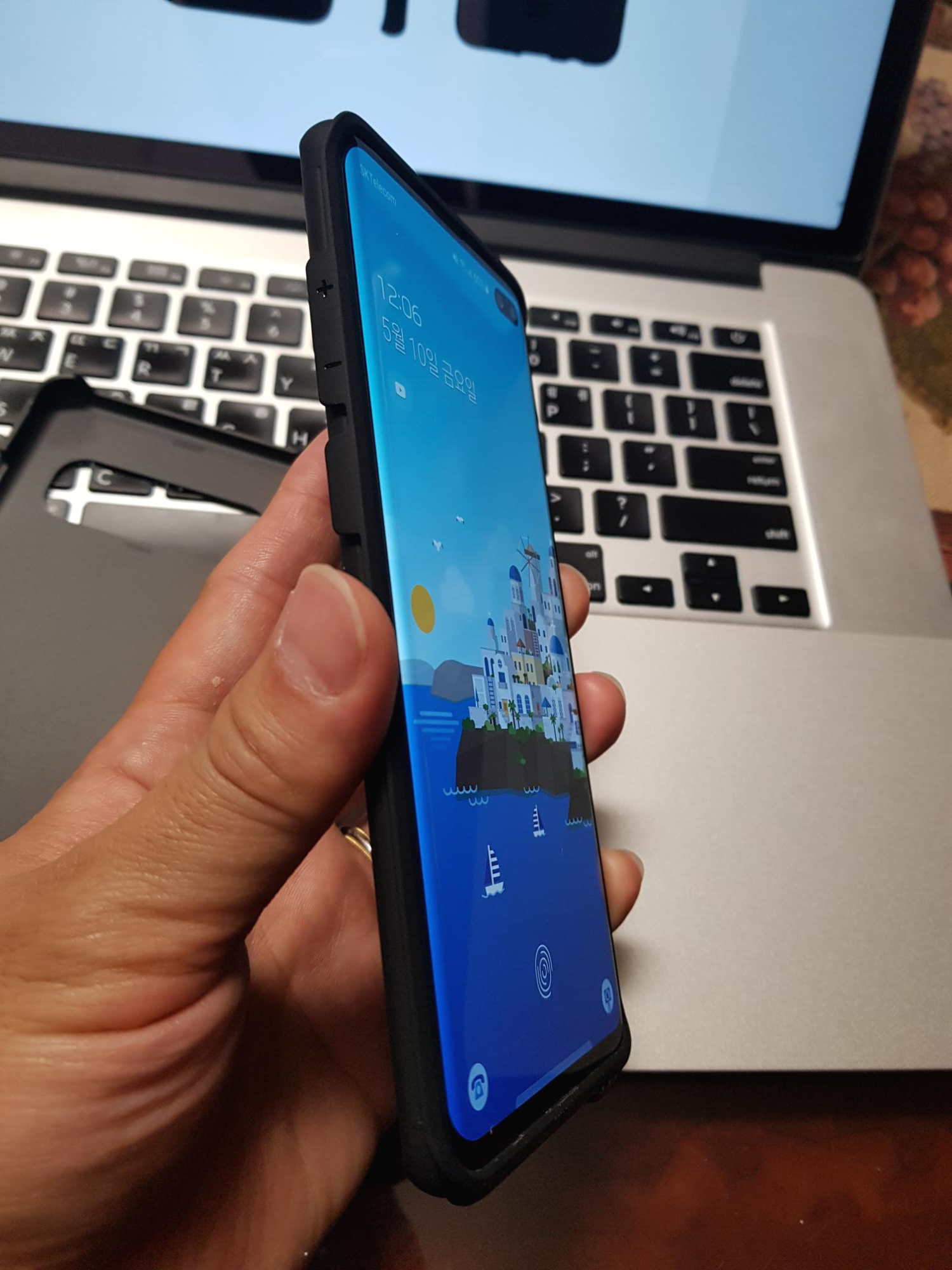 갤럭시 S10+가 커서 손에 잡기가 살짝 부담스러운데, 케이스 장착 후 좀 더 두께가 생겨서 그런 것인지 그립감이 조금 더 개선된 느낌이 듭니다. 그리고 스마트폰을 들고 있을 때, 바닥을 바치는 새끼손가락에 닿는 고무 느낌이 괜찮네요. 땀이 많이 차지 않을 것 같은 부들부들한 재질입니다.