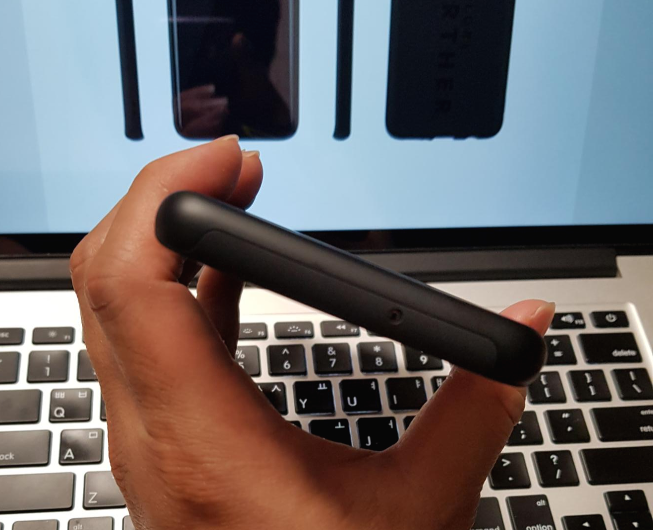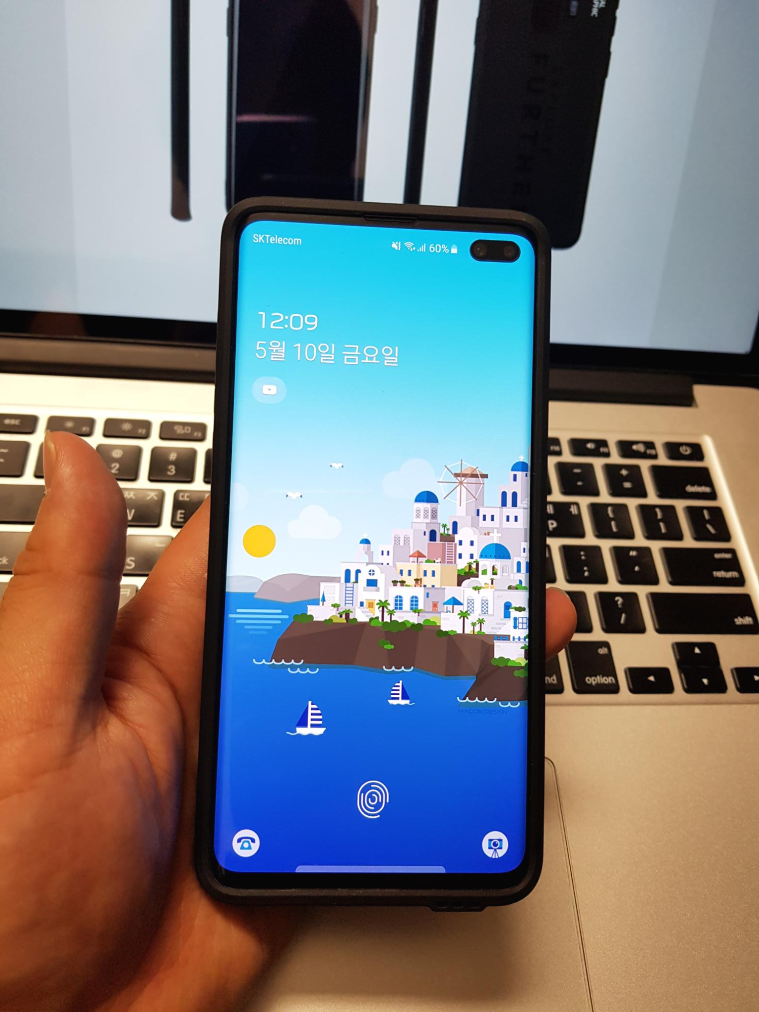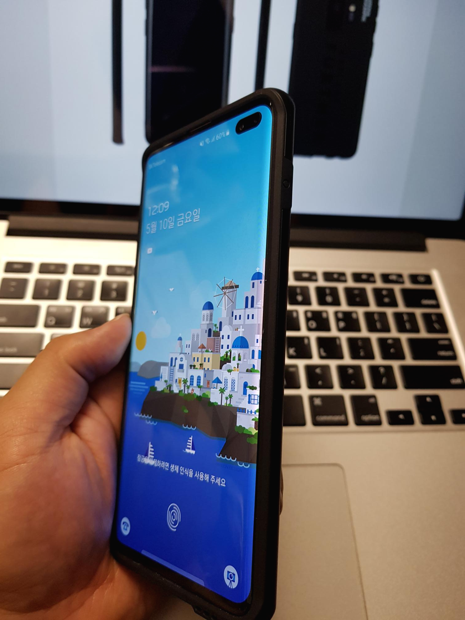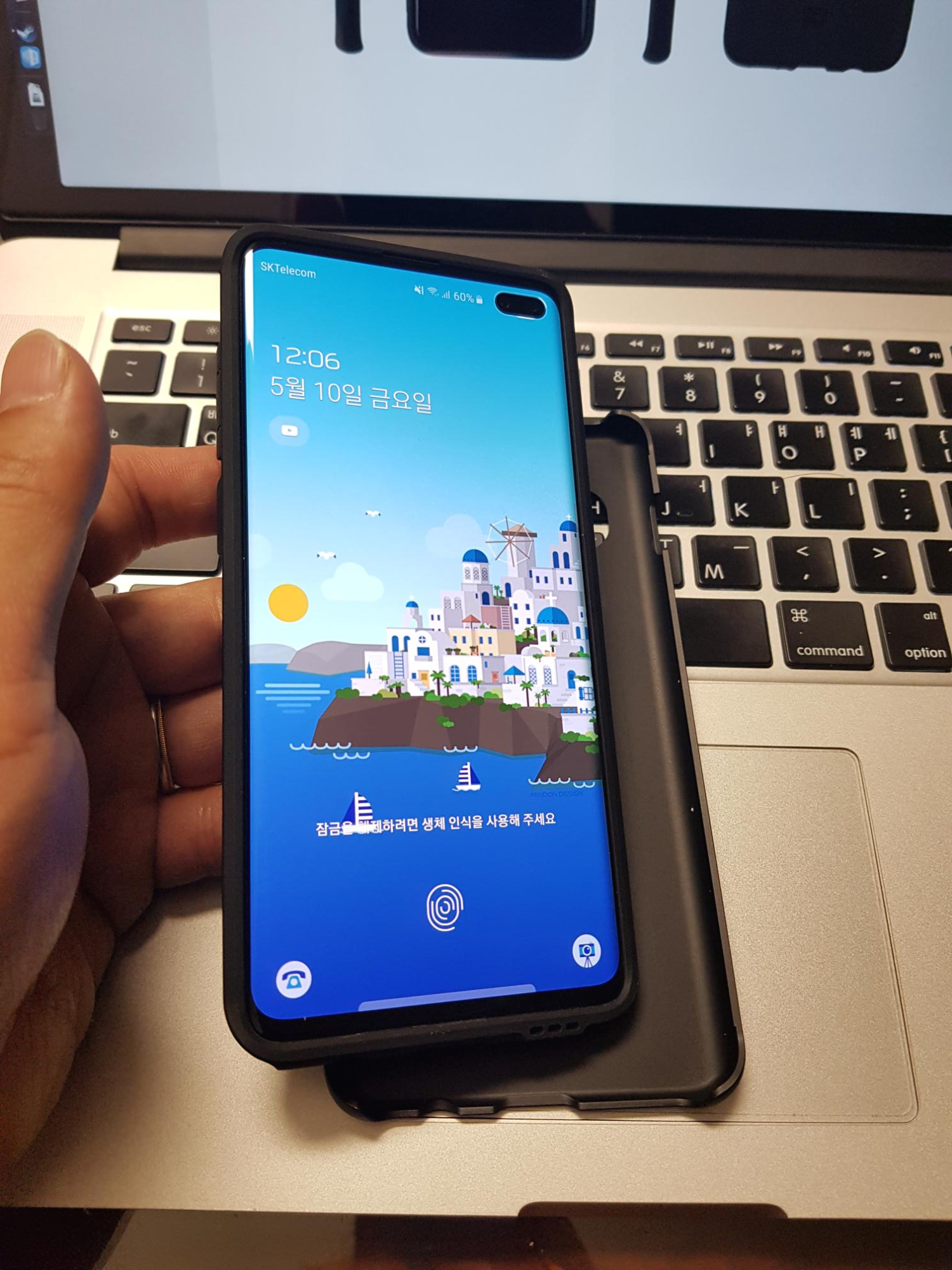 갤럭시 S10+가 커서 손에 잡기가 살짝 부담스러운데, 케이스 장착 후 좀 더 두께가 생겨서 그런 것인지 그립감이 조금 더 개선된 느낌이 듭니다. 그리고 스마트폰을 들고 있을 때, 바닥을 바치는 새끼손가락에 닿는 고무 느낌이 괜찮네요. 땀이 많이 차지 않을 것 같은 부들부들한 재질입니다.