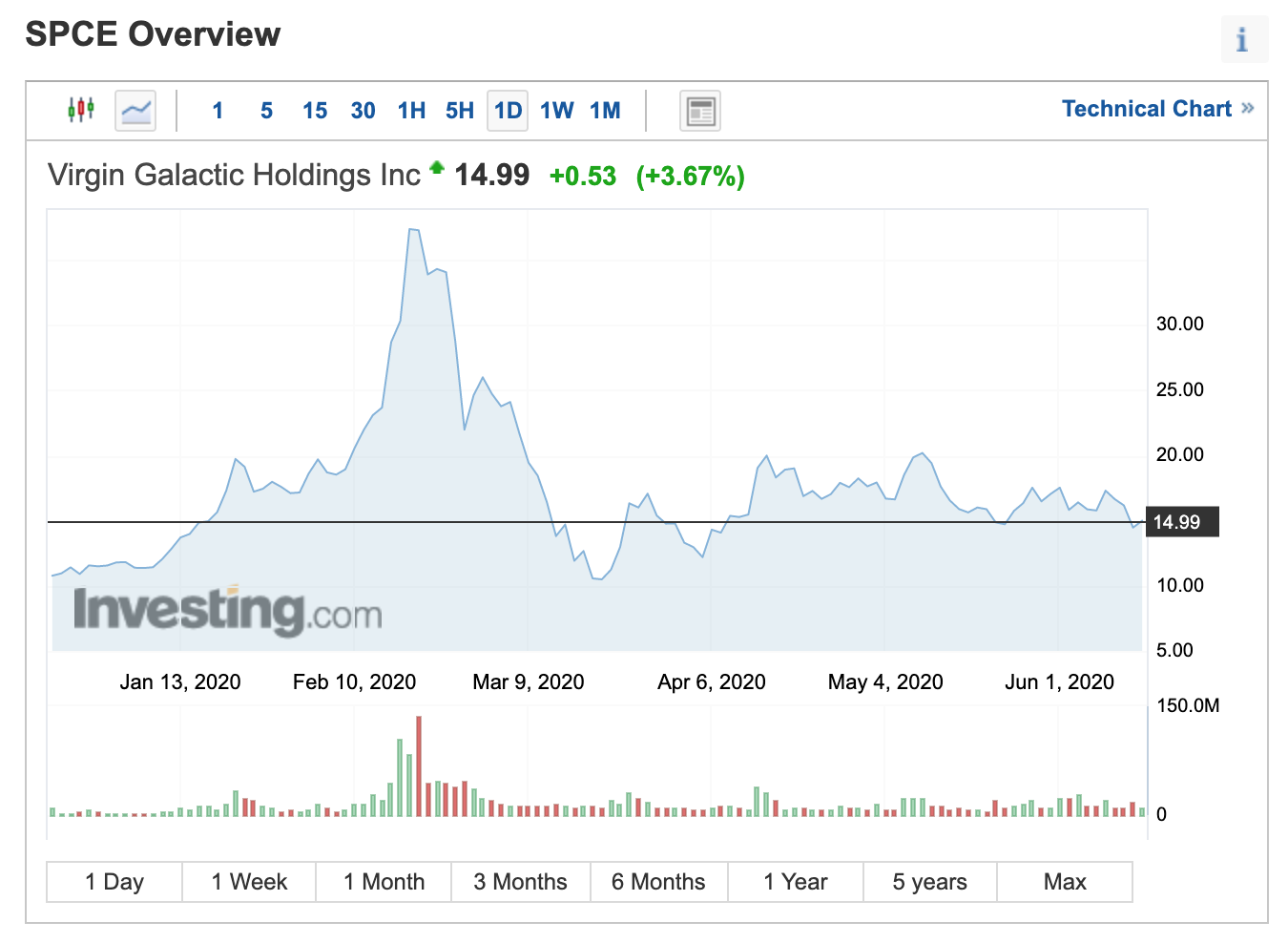 하지만, 버진 갤러틱 홀딩스(Virgin Galactic Holdings (SPCE))는 딱히 큰 기대를 못 주고 있습니다.