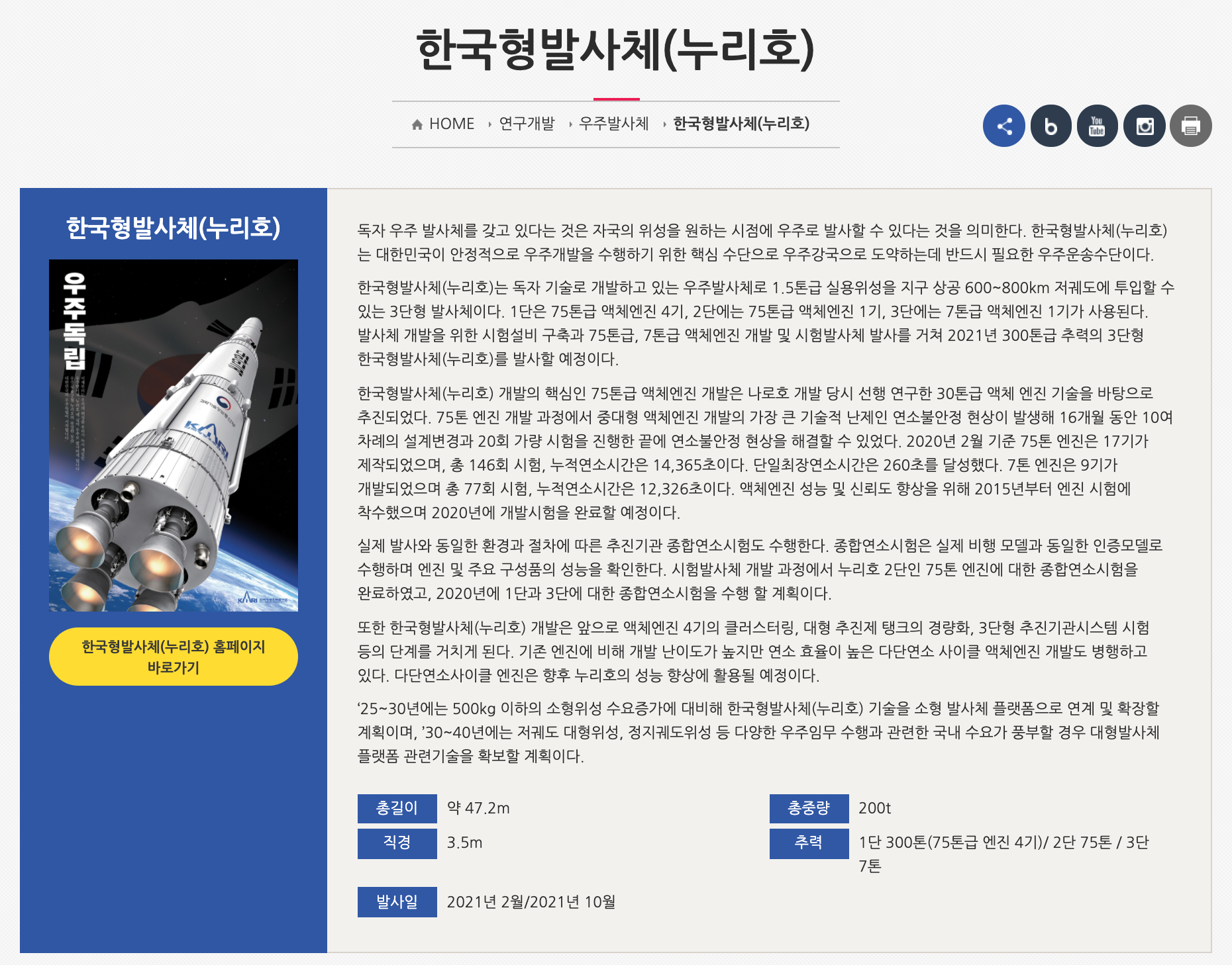 우리나라도 지난 2013년 1월 30일 오후 4시, 3차 시도 만에 발사에 성공한 나로호(KSLV-1)의 후속으로 훨씬 좋은 성능의 누리호(KSLV-2)의 제작과 시험이 한창입니다.