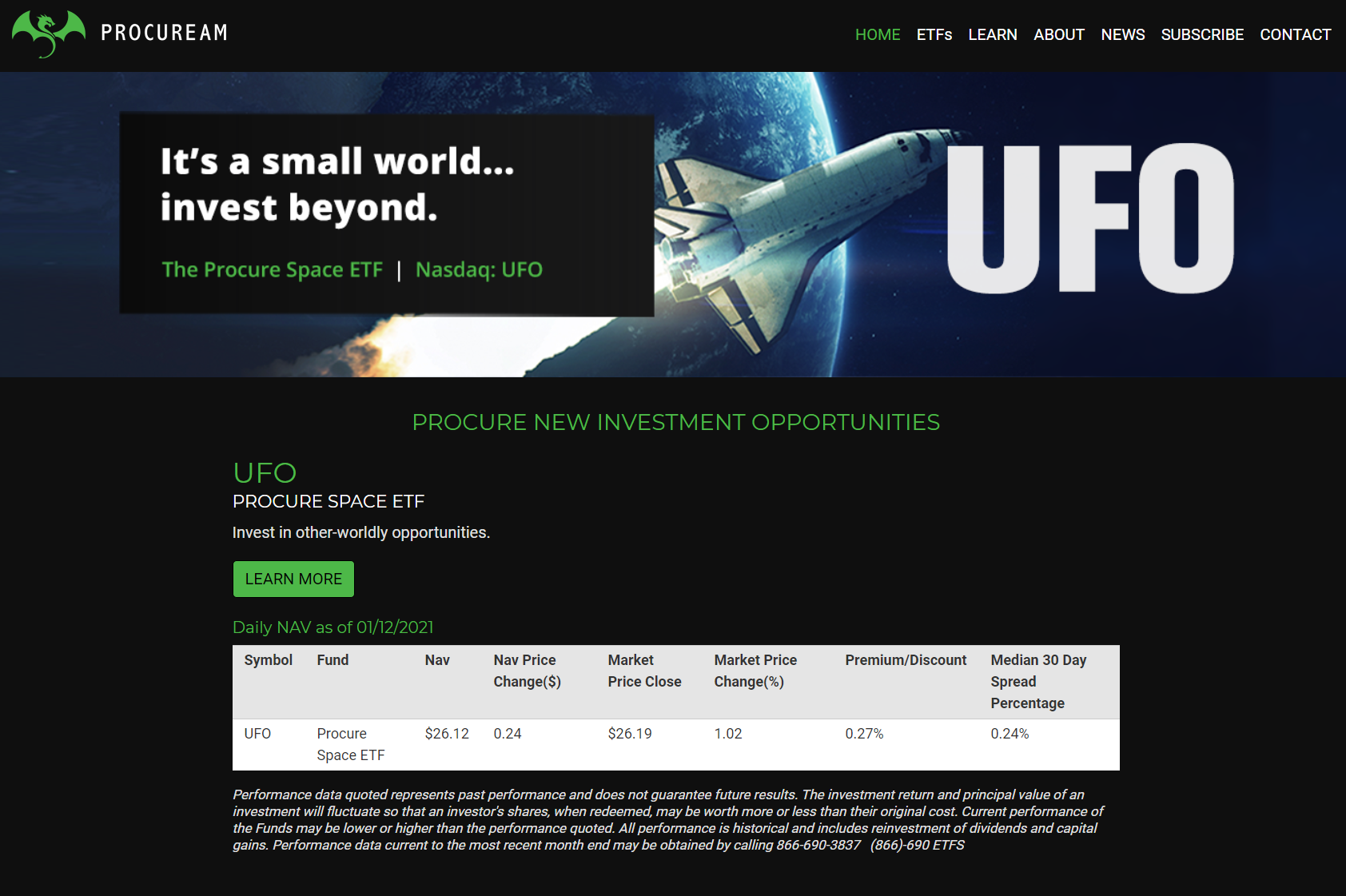 미국 우주개발 기업을 엮은 프로큐어 스페이스 EFT, UFO 가 있습니다.