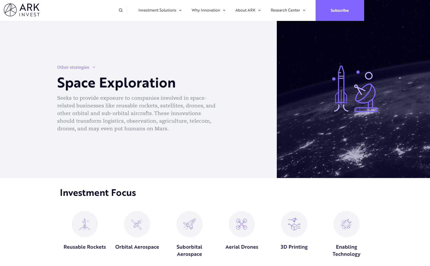 위 화면은 아크 인베스트에서 우주탐사(Space Exploration) 파트에 있는 포커스 입니다.