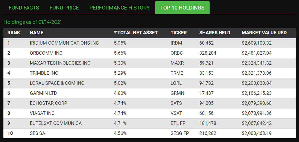 현재 이 분야에 대한 ETF는 별도로 운영하고 있지 않은데, ETF를 등록한다면 분명히 SpaceX, Maxar Technologies, Virgin Galactic을 담을 것으로 예상됩니다.