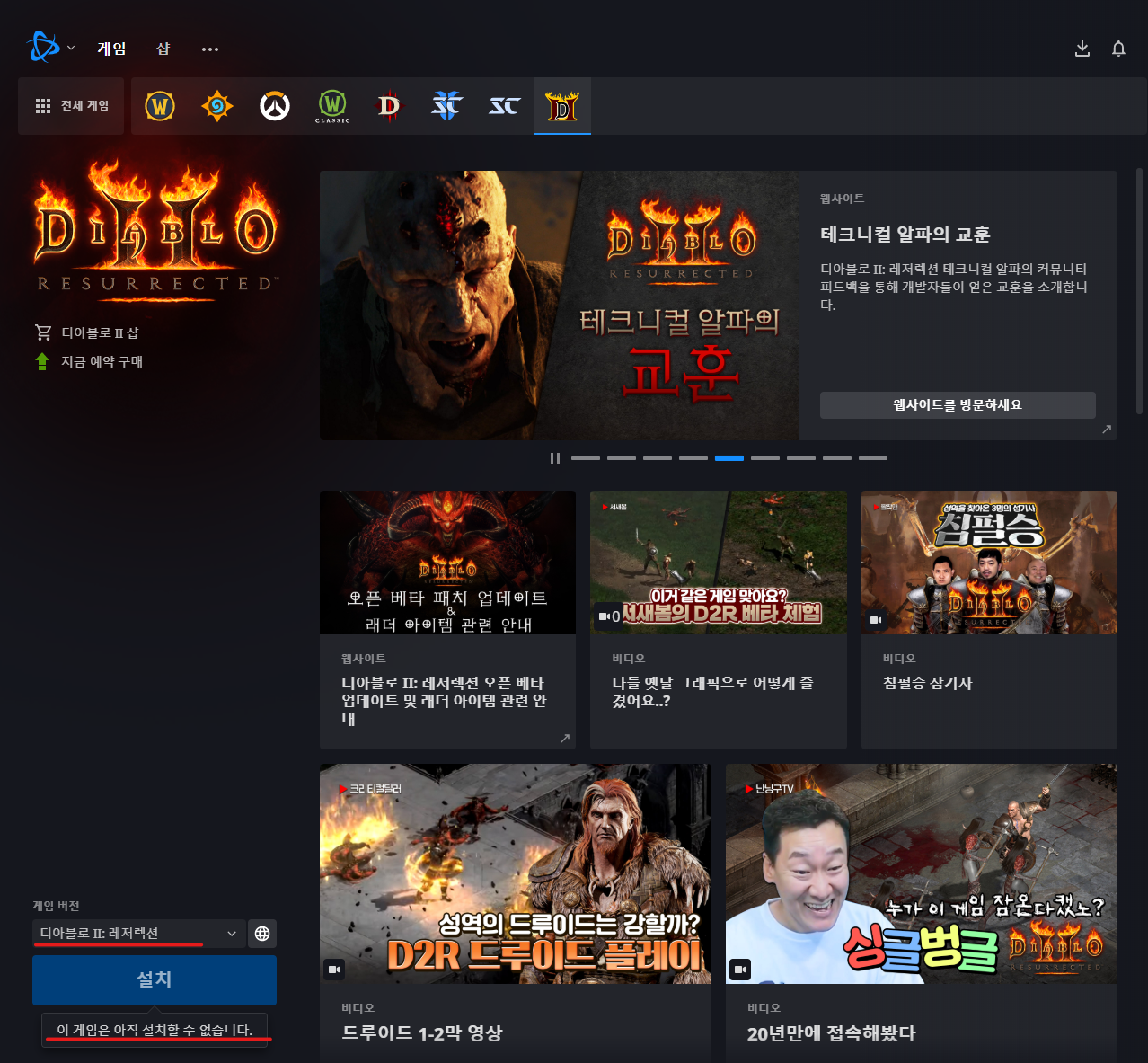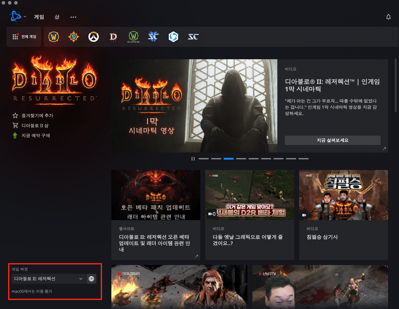 디아블로2 레저렉션(베타) 다운로드 방법입니다. (맥에서는 플레이가 불가합니다.)