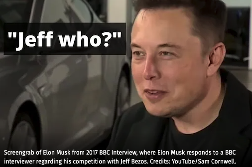 최근에는 테슬라의 주가가 폭등하면서, 일론 머스크가 제프 베조스를 제치고 세계 최고의 부호가 되자, 또 다시 일론 머스크가 제프 베조스의 거룩한 트윗에 댓글을 달며 놀리는 광경이 연출되기도 했죠.
