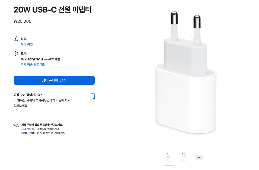 애플 정품 USB-C 전원 어댑터가 20W, 2.5만원이고,