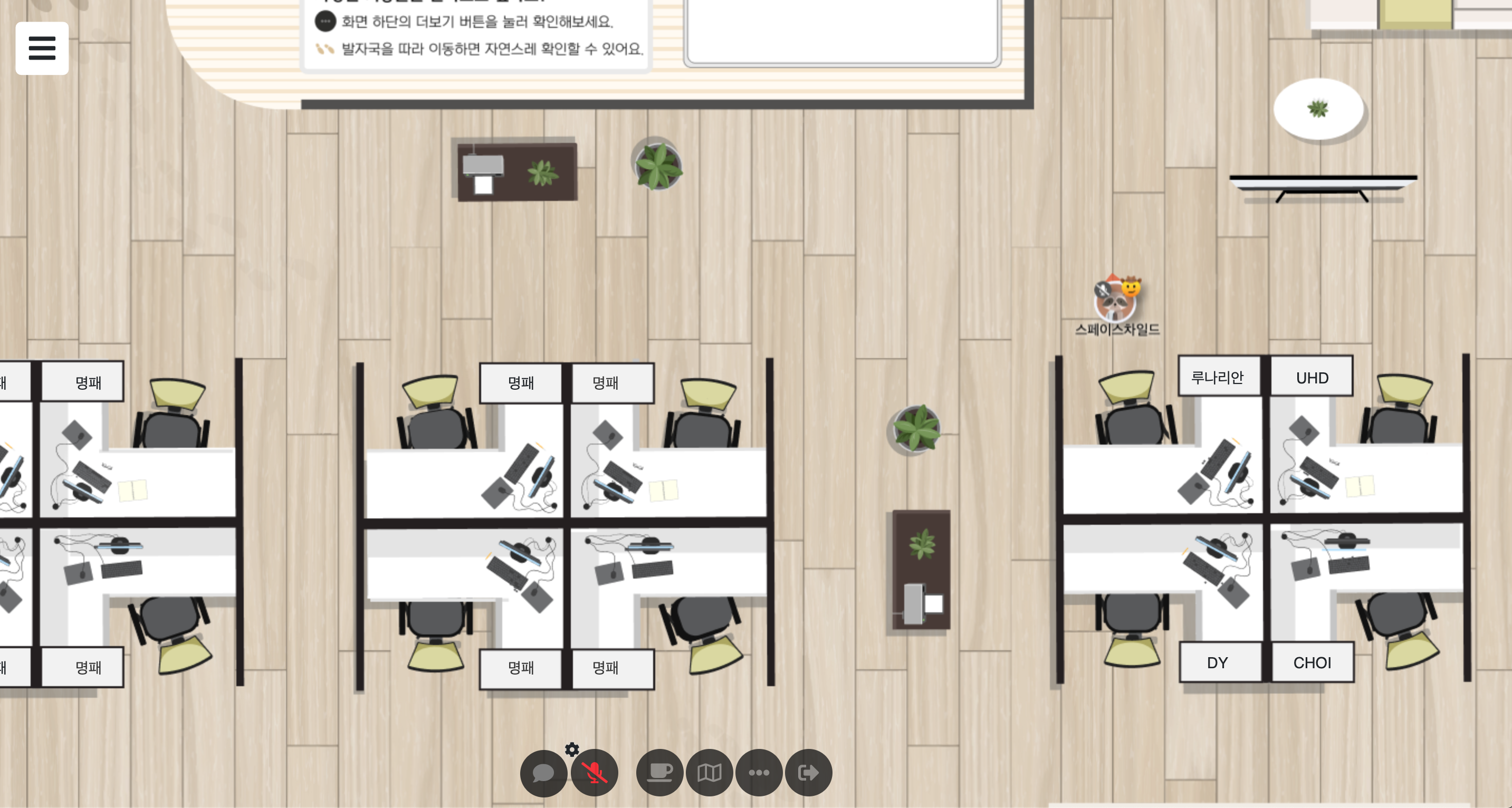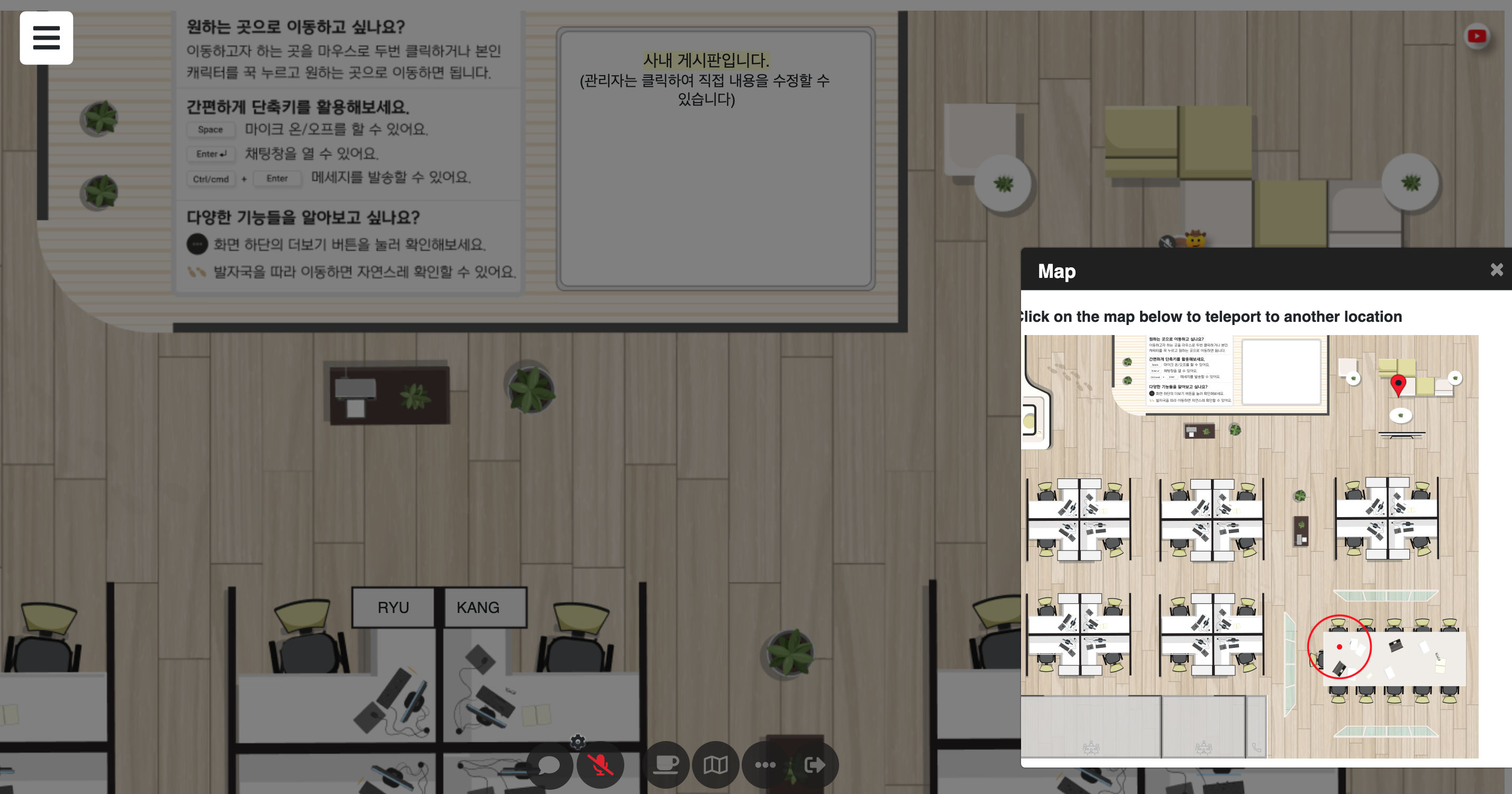 클릭으로 직접 이동하는 것 말고, 아래 지도를 클릭하면 화면의 오른쪽 하단에 사무실 전체 조감도가 뜹니다.