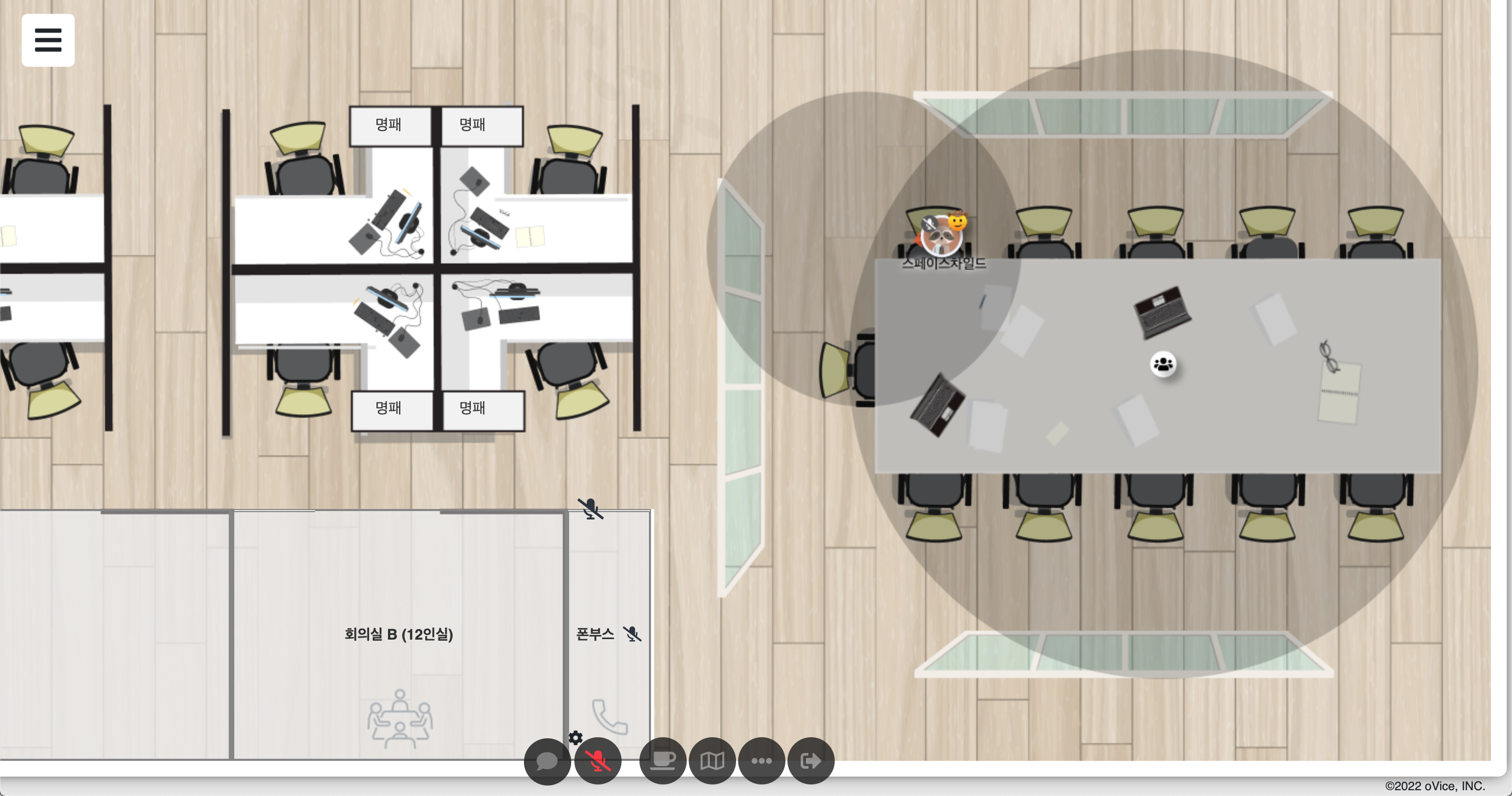 이렇게 회의실로 입장하면, 내 말이 들리는 같은 영역에 있는 사람들이 표시 됩니다.