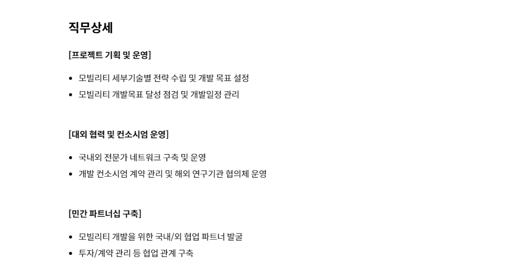 프로젝트 매니저급과 실무개발을 담당할 실무연구원을 채용하고자 하는 것이 느껴집니다.