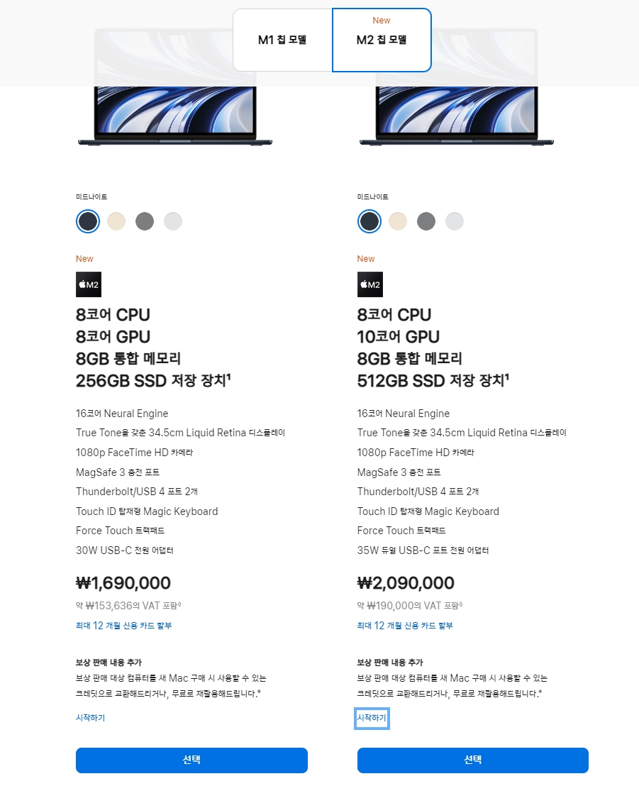 아래와 같이 애플 공홈에서 제품 구매를 하려고 하면,