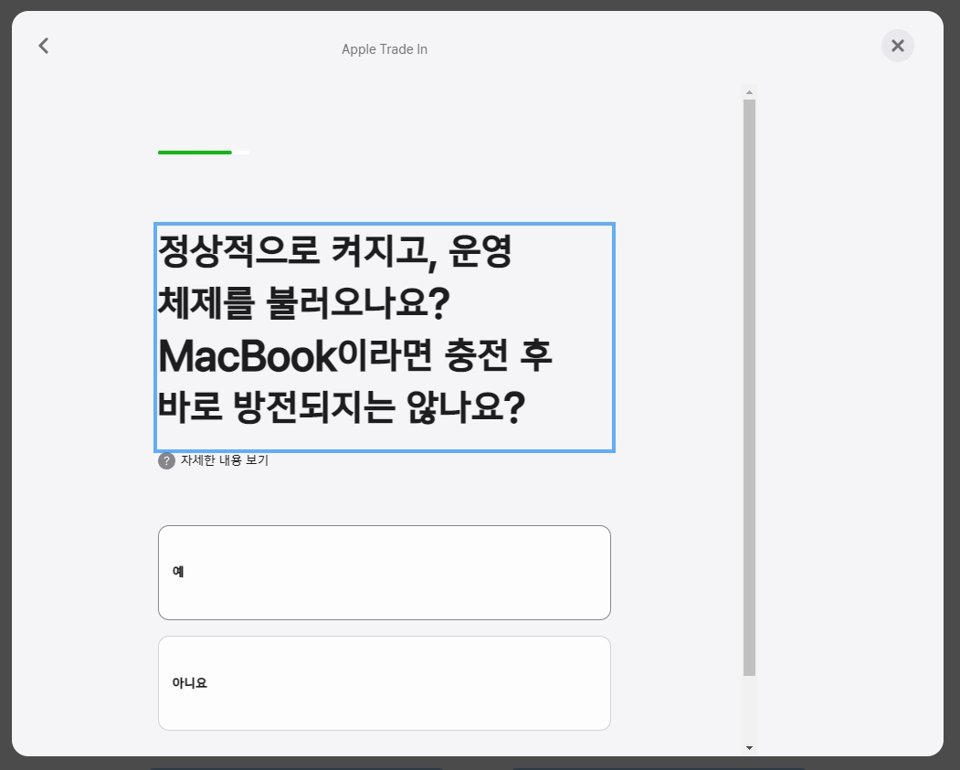 정상적인 상태로 잘 작동하는 맥북입니까? 라는 질문.