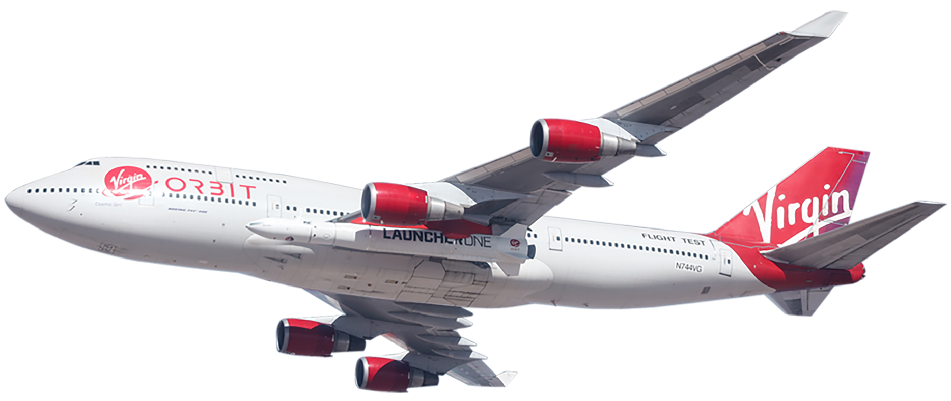 보잉 747 기체를 개조해서 날개 밑에 “런처 원”이라는 로켓을 장착할 수 있는 브라켓이 마련되어 있습니다.