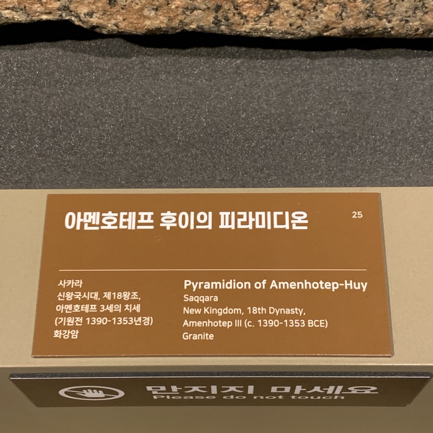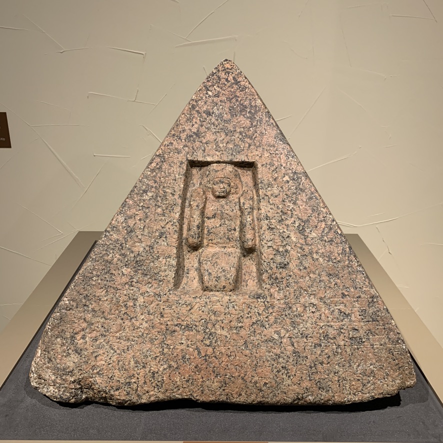 전시되어 있는 피라미디온은 화강암(granite)이며, 태양에게 기도를 올리는 모습(양팔을 들어올린 모습)이 새겨져 있습니다.