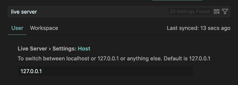 2. VSCode - Live Server Host 설정을 개인 IP에서 local 호스트로 바꿔주기