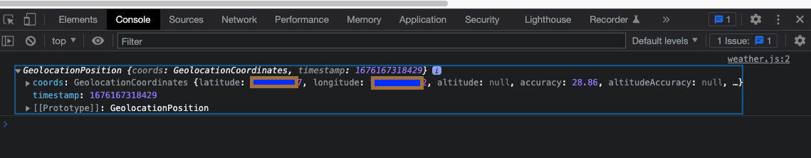 이제 GeoLocationPosition을 잘 출력하는 것을 볼 수 있습니다.