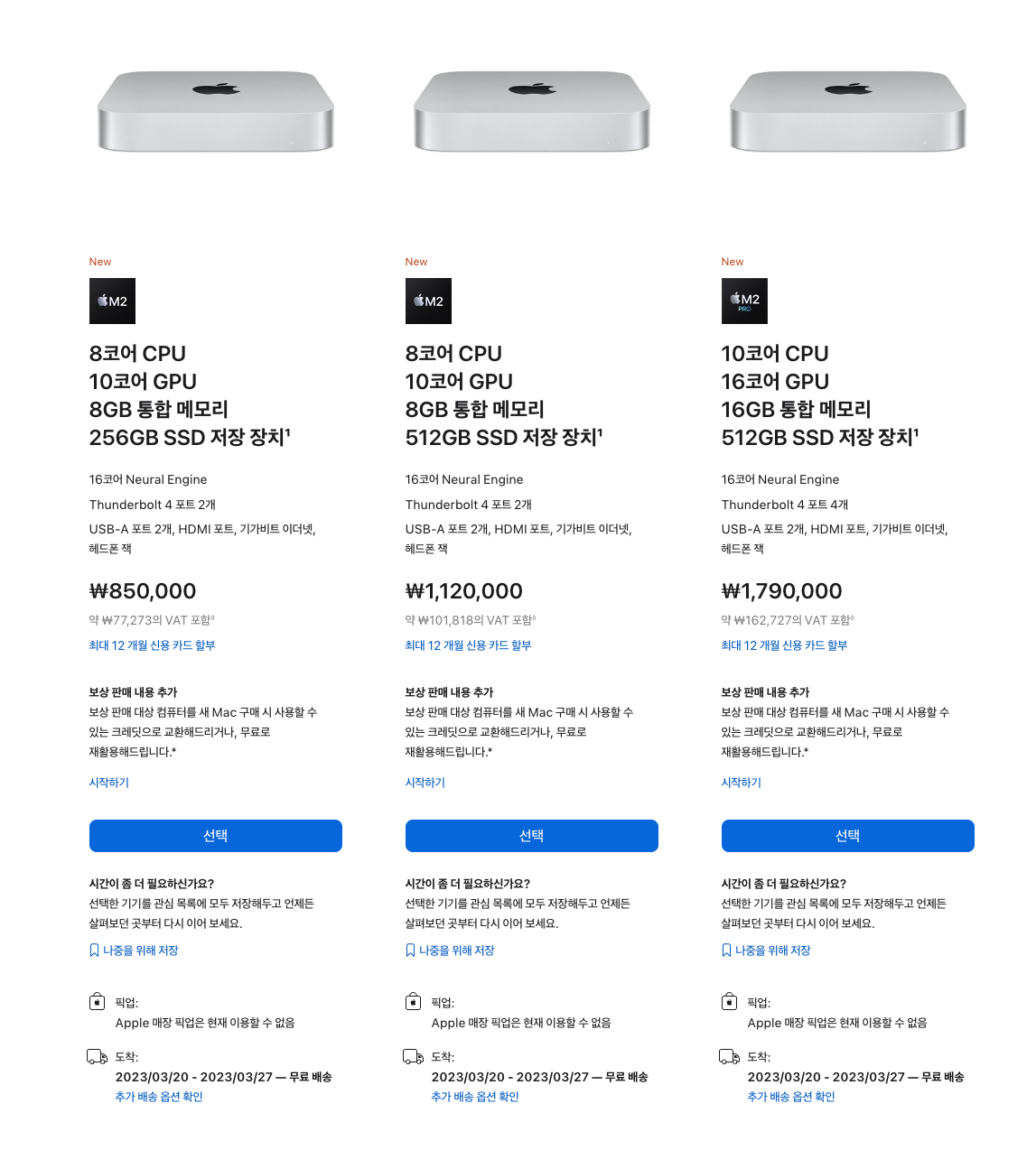 아참, M2 맥미니는 실버 색상만 나옵니다.