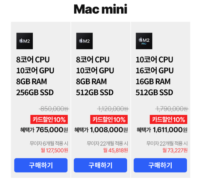 맥미니 기본형이 카드 10% 할인 해서 76.5만원이니까, 진짜 괜찮네요.