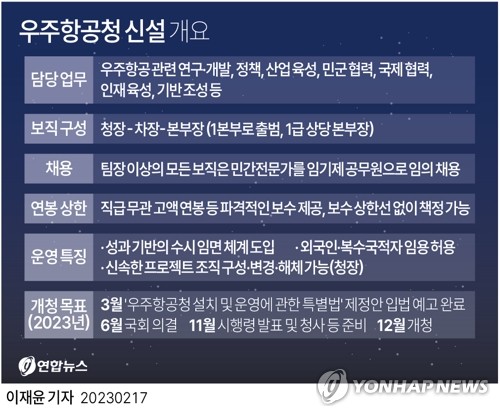 우주항공청 설립특별법, 내주 입법예고…12월 개청 목표 | 연합뉴스