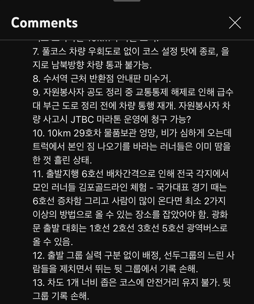 검색을 해보니, 이번 JTBC 마라톤의 운영에 아쉬움을 느꼈던 사람이 저 말고도 많았던 모양입니다.