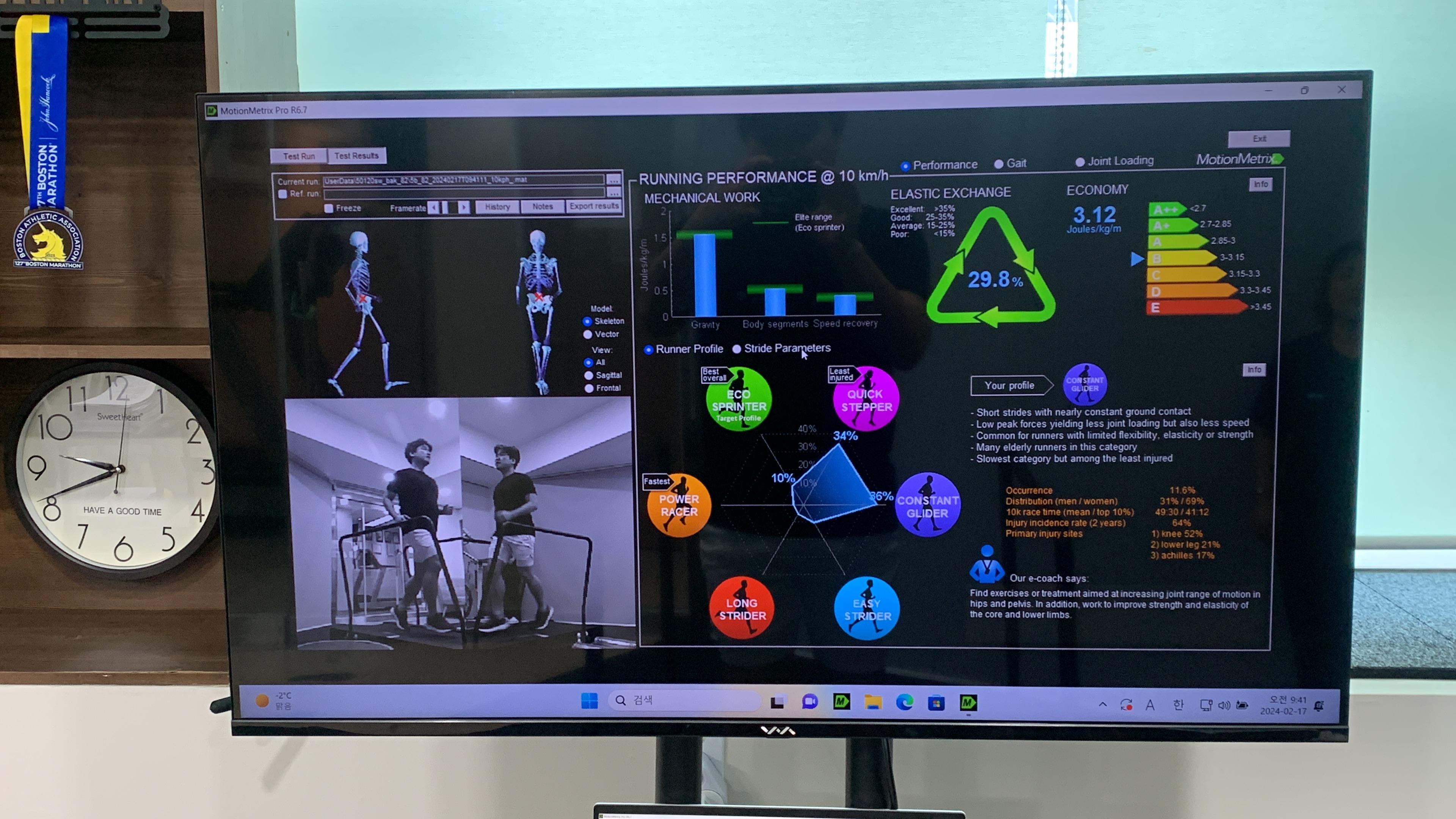 제가 허리를 너무 젖히고 뛰어서, 효율이 더 떨어지는 거라는 조언을 해주셨습니다. 역시 풀마라톤을 뛰시는 의사선생님은 다르시네요.