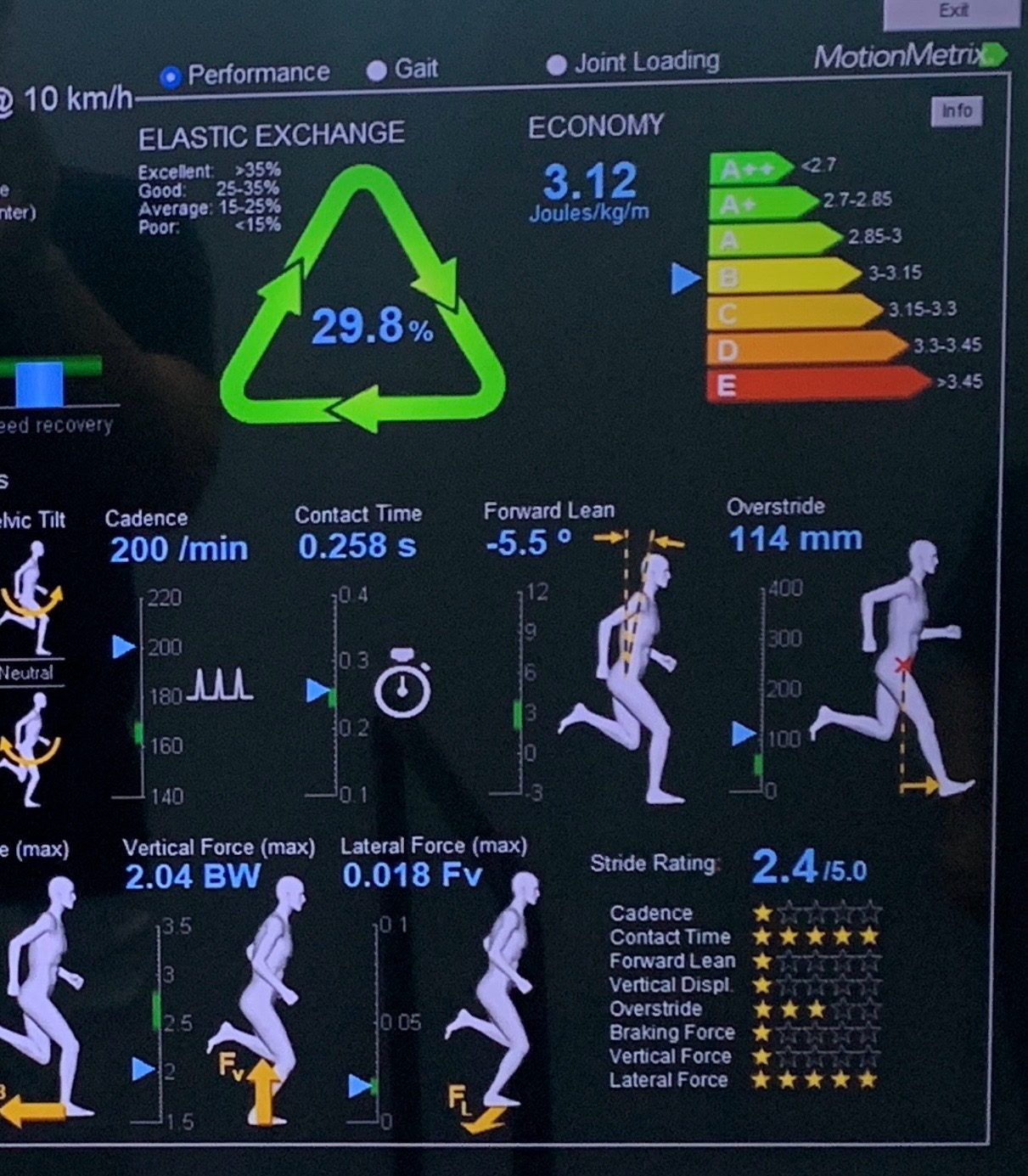 위 그림 상단에 리사이클링 표시처럼 보이는 녹색은 ‘탄성’을 말합니다. 약 30% 정도의 탄성으로 뛰고 있다는 거고, 효율도 엄청 좋지는 않지만 보통 정도 수준이 되네요.