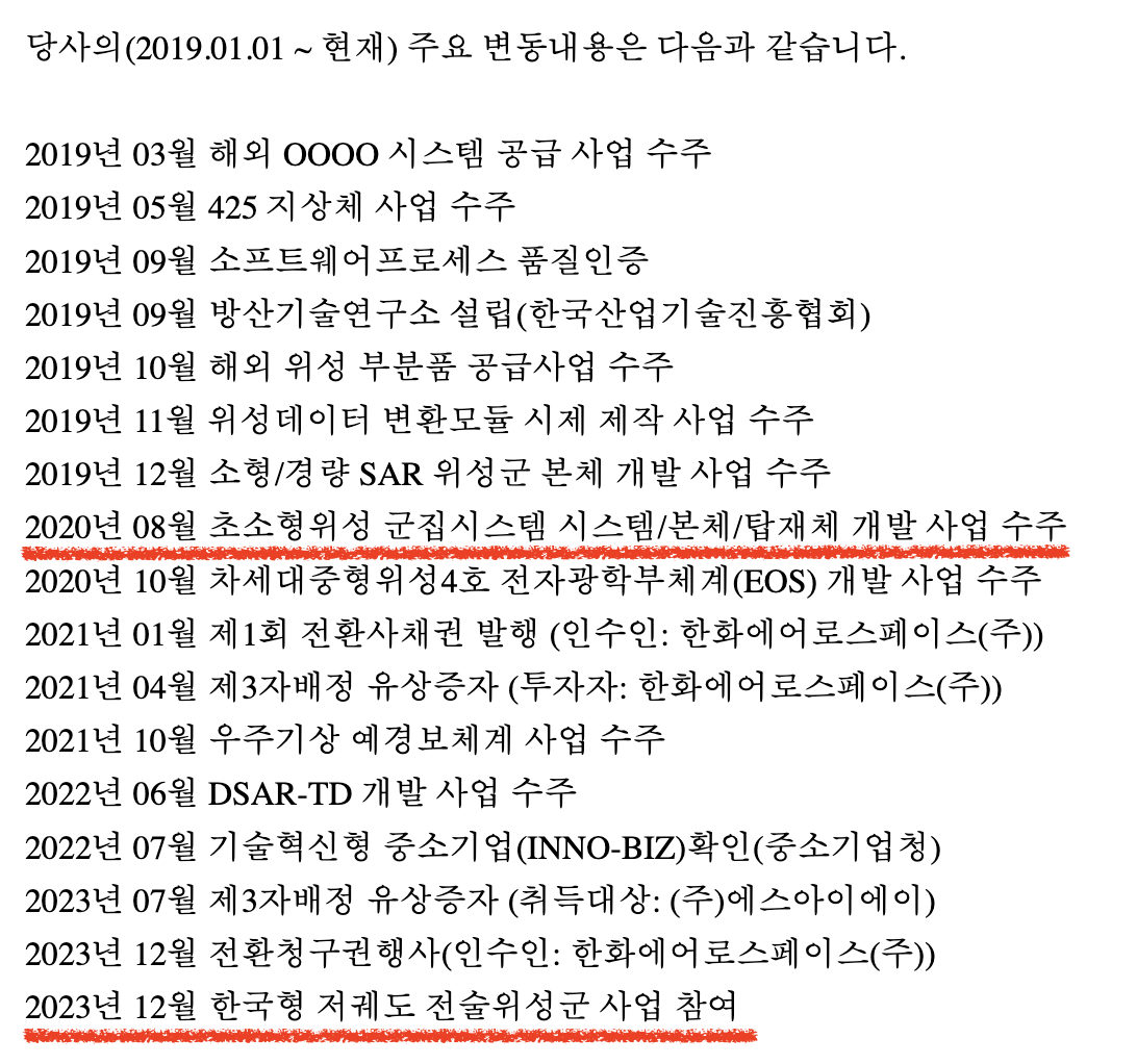 * 아래는 쎄트렉아이의 연간 보고서에 나온 초소형 군집위성 관련 업력입니다.