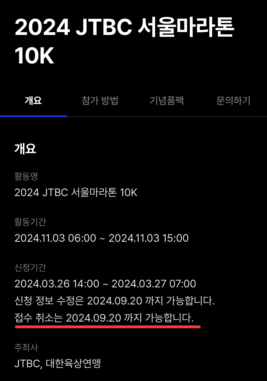 며칠 전 2024년 JTBC 마라톤 대회 접수가 마감되었습니다. 올해 2024년 11월 3일 대회인데, 접수가 굉장히 빠른 편이었습니다.