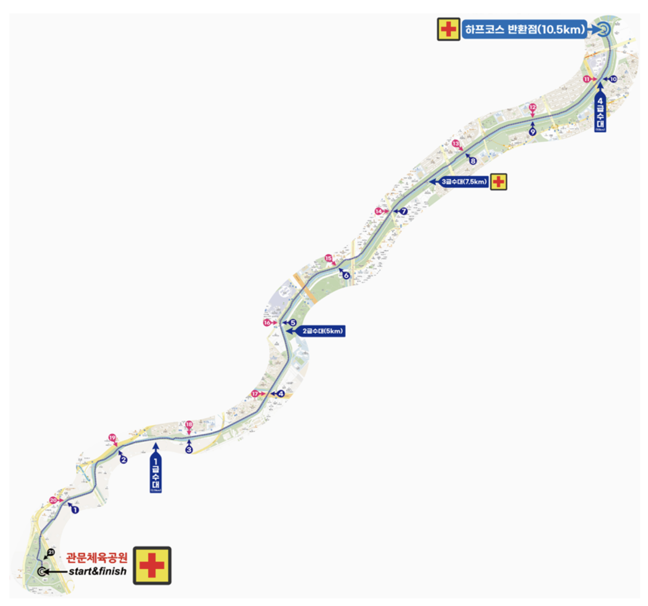 하프마라톤 코스는 출발지와 도착지가 동일하기 때문에 짐을 차에 실어둬도 되기 때문에 좋네요.