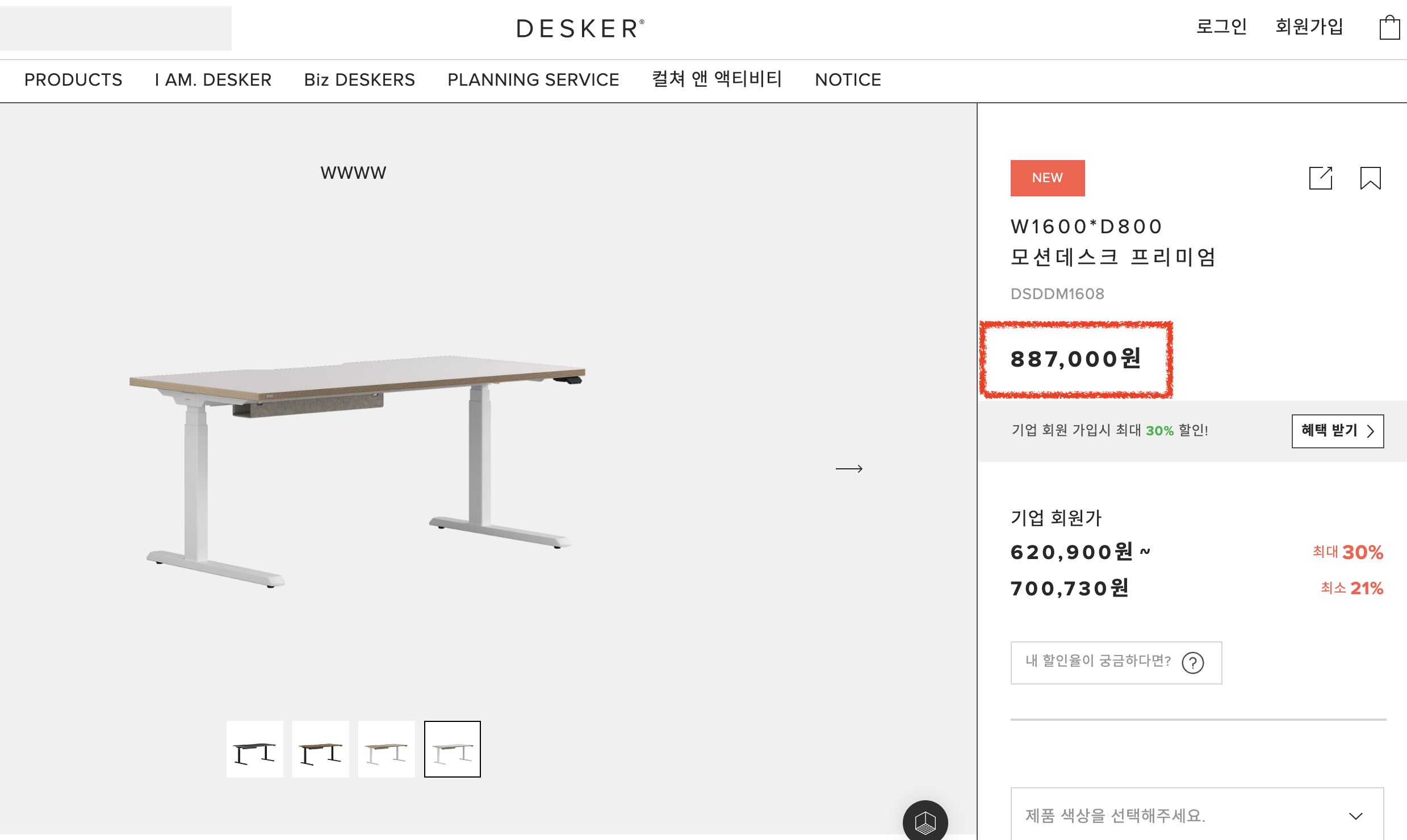 데스커의 경우 가격만 좀 착하면 좋겠다는 생각이 많이 드는 브랜드입니다.