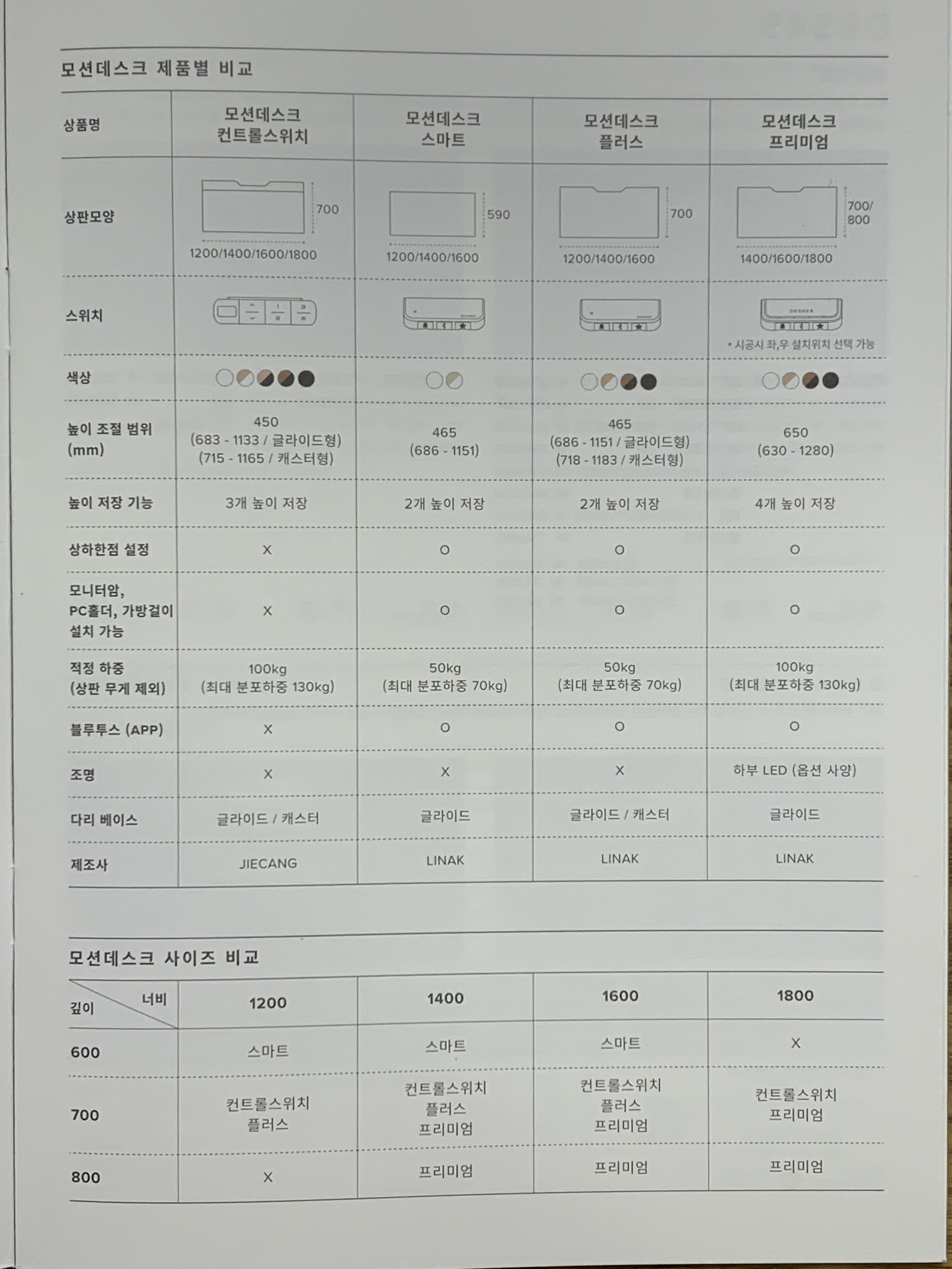 이것 저것 검색도 많이하고 고민도 정말 많이 했는데, 데스커 모션데스크가 무난하겠더군요.