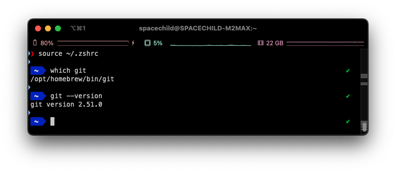 /opt/homebrew/bin/git <=== 이라고 출력된다면, Homebrew 설치버전이 있는 것