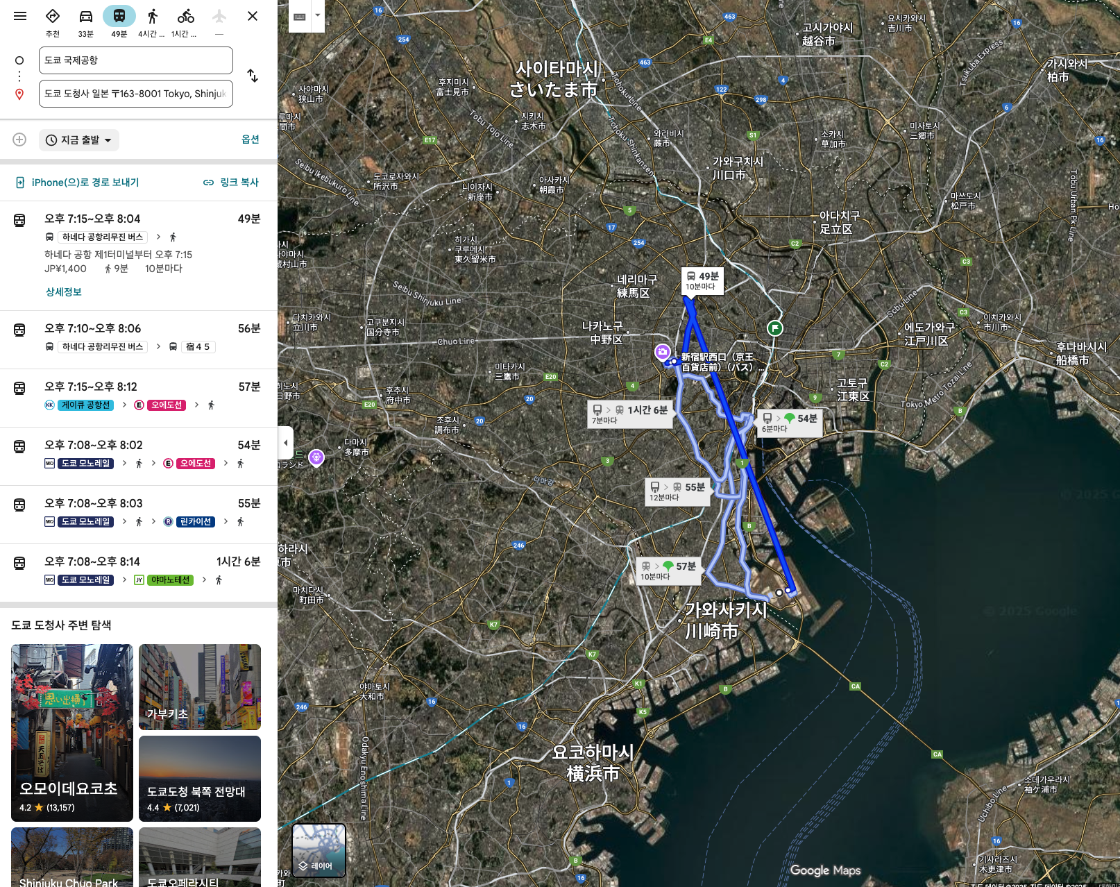 하네다 국제공항에서는 도쿄 도청까지 대략 1시간 정도 걸리는 것 같습니다.