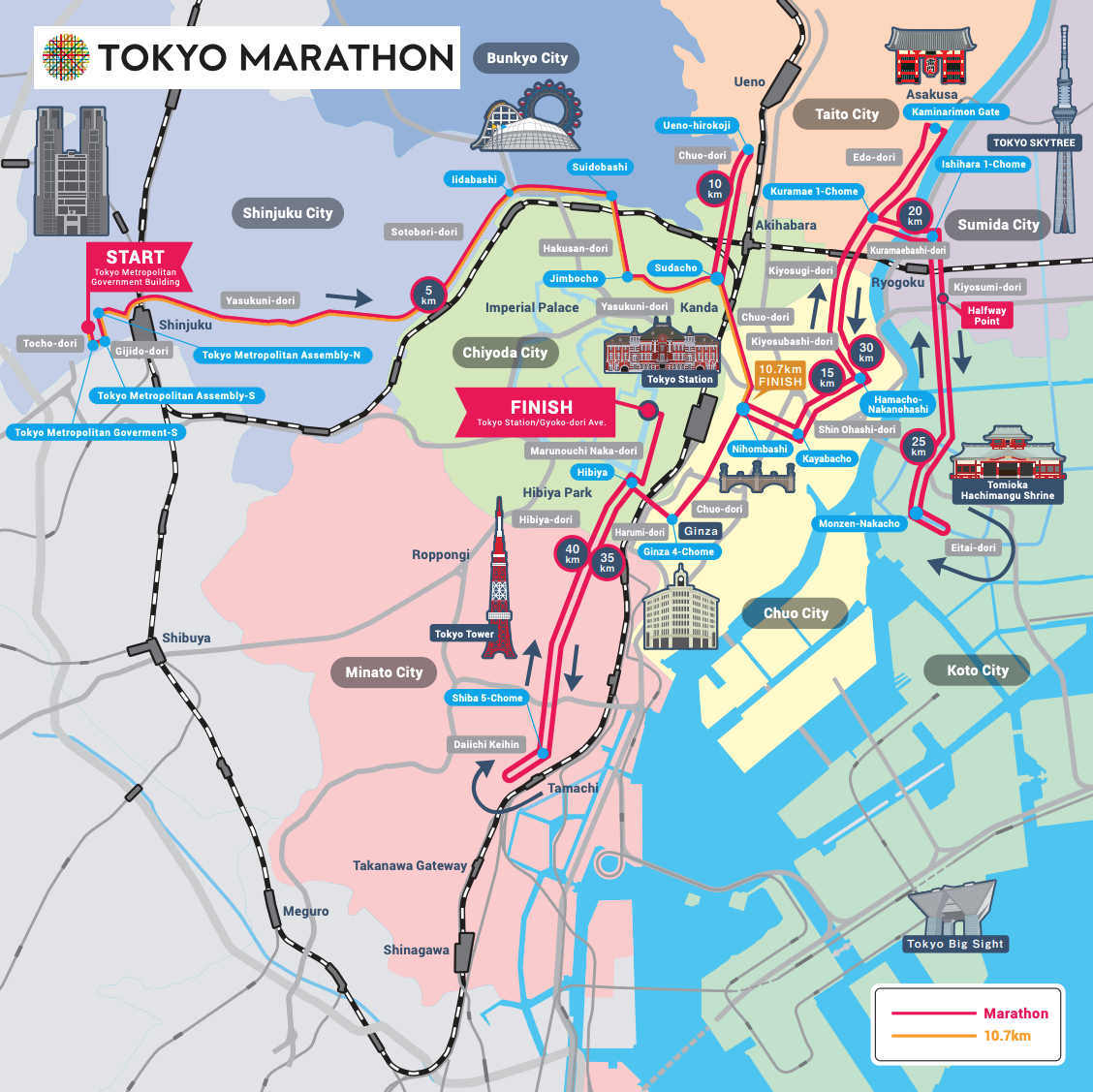 찾아보니 도쿄마라톤은 도쿄 됴쿄청사에서 시작인 것 같습니다.