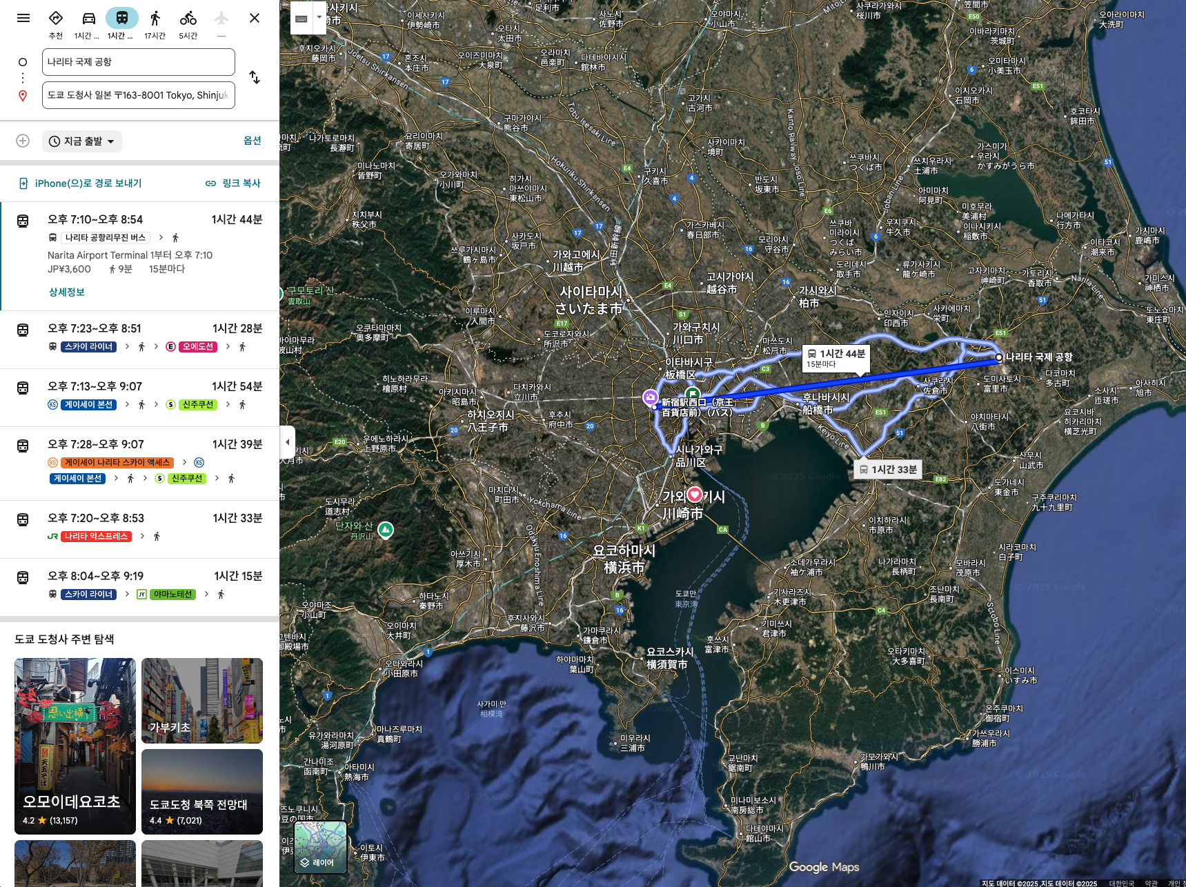 나리타 국제공항에서는 도쿄 도청을 찍었을 때,