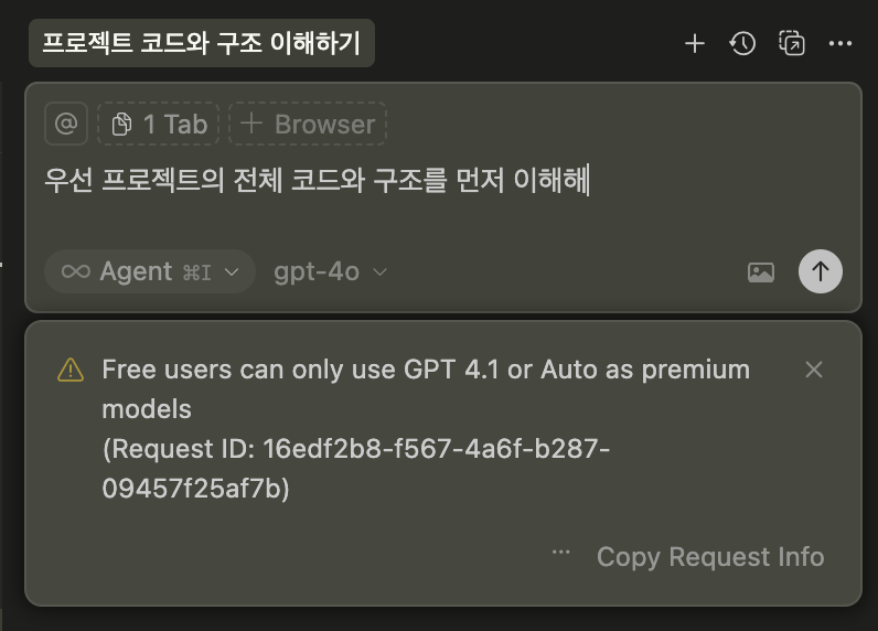 즉, Cursor 내에서 ChatGPT를 쓰더라도 그건 저의 ChatGPT 계정과는 별개인 것이죠.